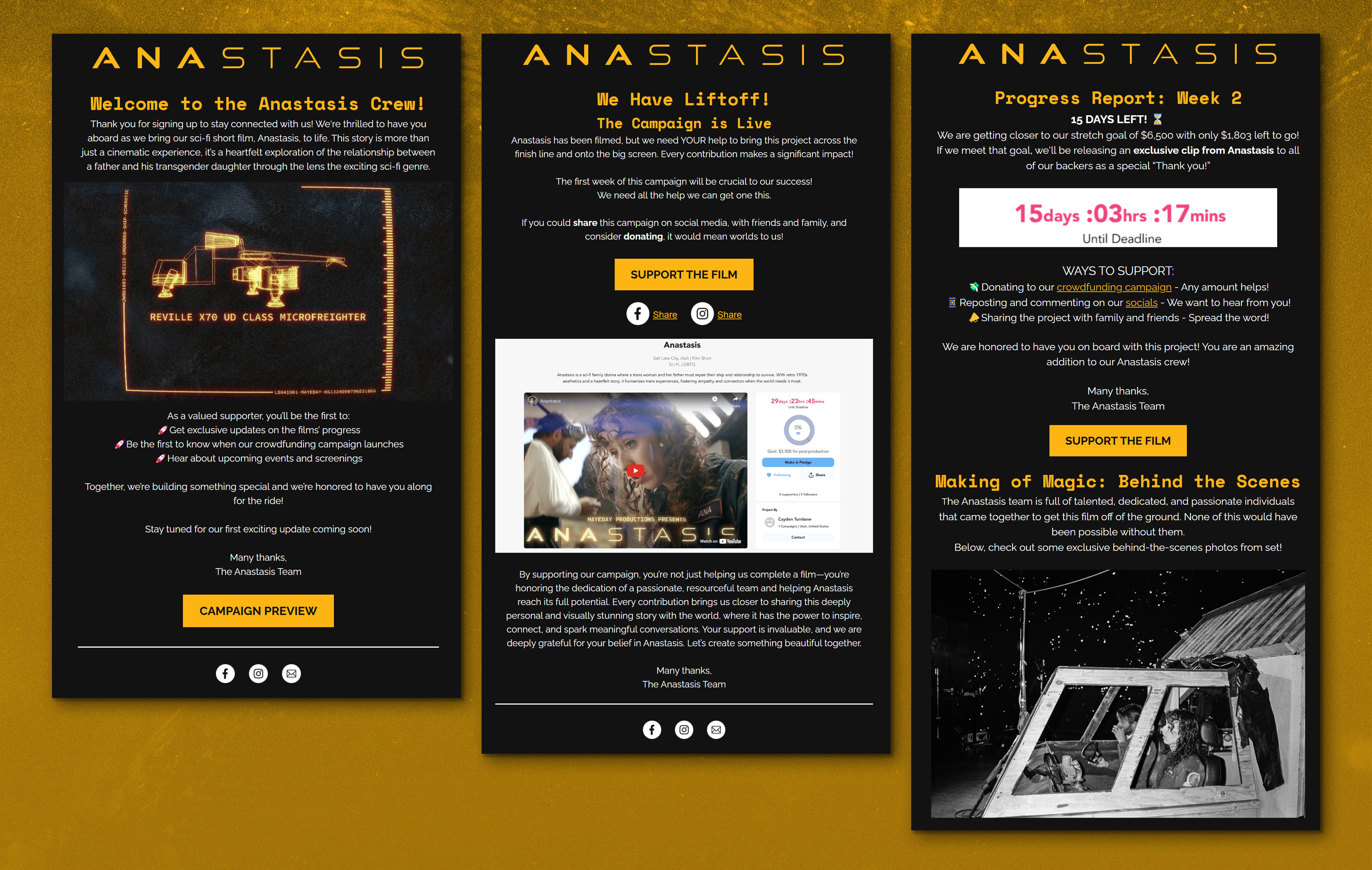 Developed an integrated marketing campaign that drove the short film's crowdfunding to full funding in under 48 hours. Implemented a social media strategy with cohesive visuals and captions, an email campaign offering exclusive content and updates, and a complete website applying the film's visual identity.