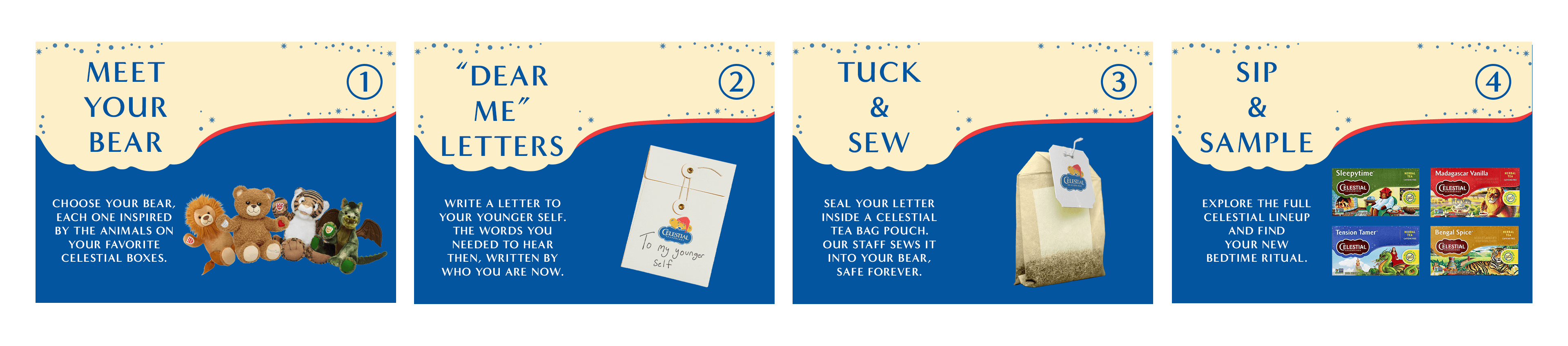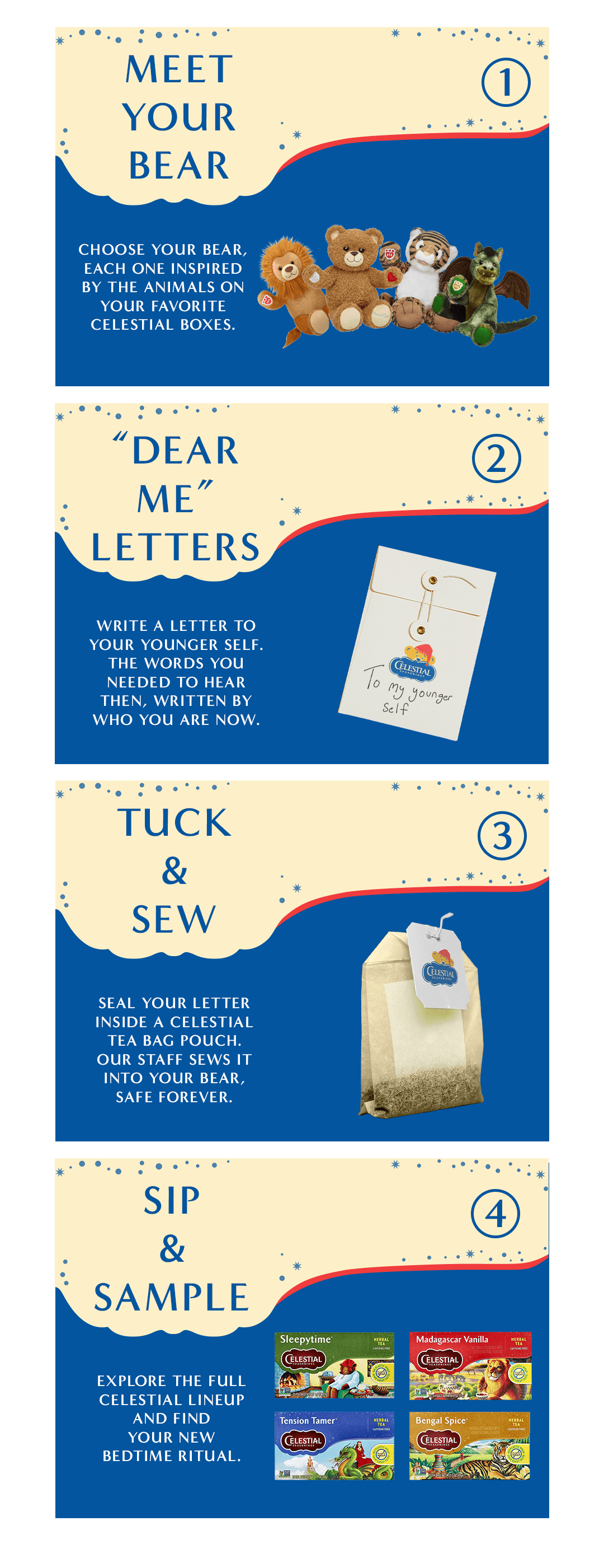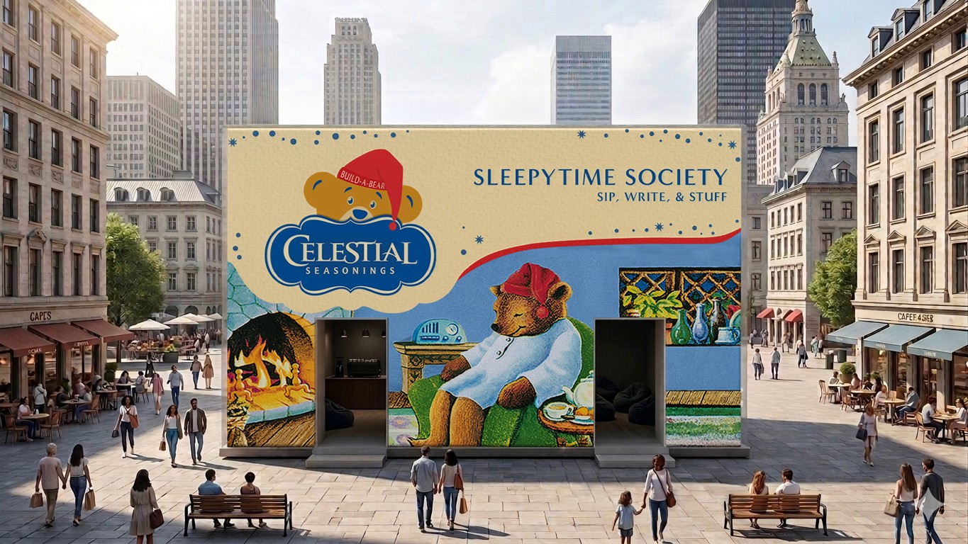 Studies show that Gen Z is the most anxious generation AND the most nostalgic generation. Celestial Seasonings and Build-A-Bear teamed up in a pop-up where stressed young adults can write letters to their younger selves, seal them in tea bag-shaped pouches, and stuff them inside Build-A-Bear companions while sampling calming teas. They leave with a tangible reminder that taking care of yourself isn't childish, it's essential.